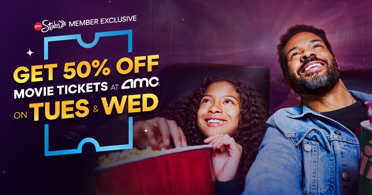 Movie nights just got even better: AMC Stubs members get 50% off tickets and small combos every Tuesday and Wednesday at AMC Causeway 13. See Wicked: For Good (or anything you want!) for half the price.